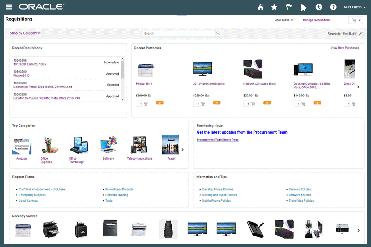 Oracle’s ERP procurement solution also has the capacity to streamline procure-to-pay processes through automation. Simplified shopping improves the buyer experience for consumers, whilst the solution also ensures negotiated pricing and terms automatically guarantee maximum savings.