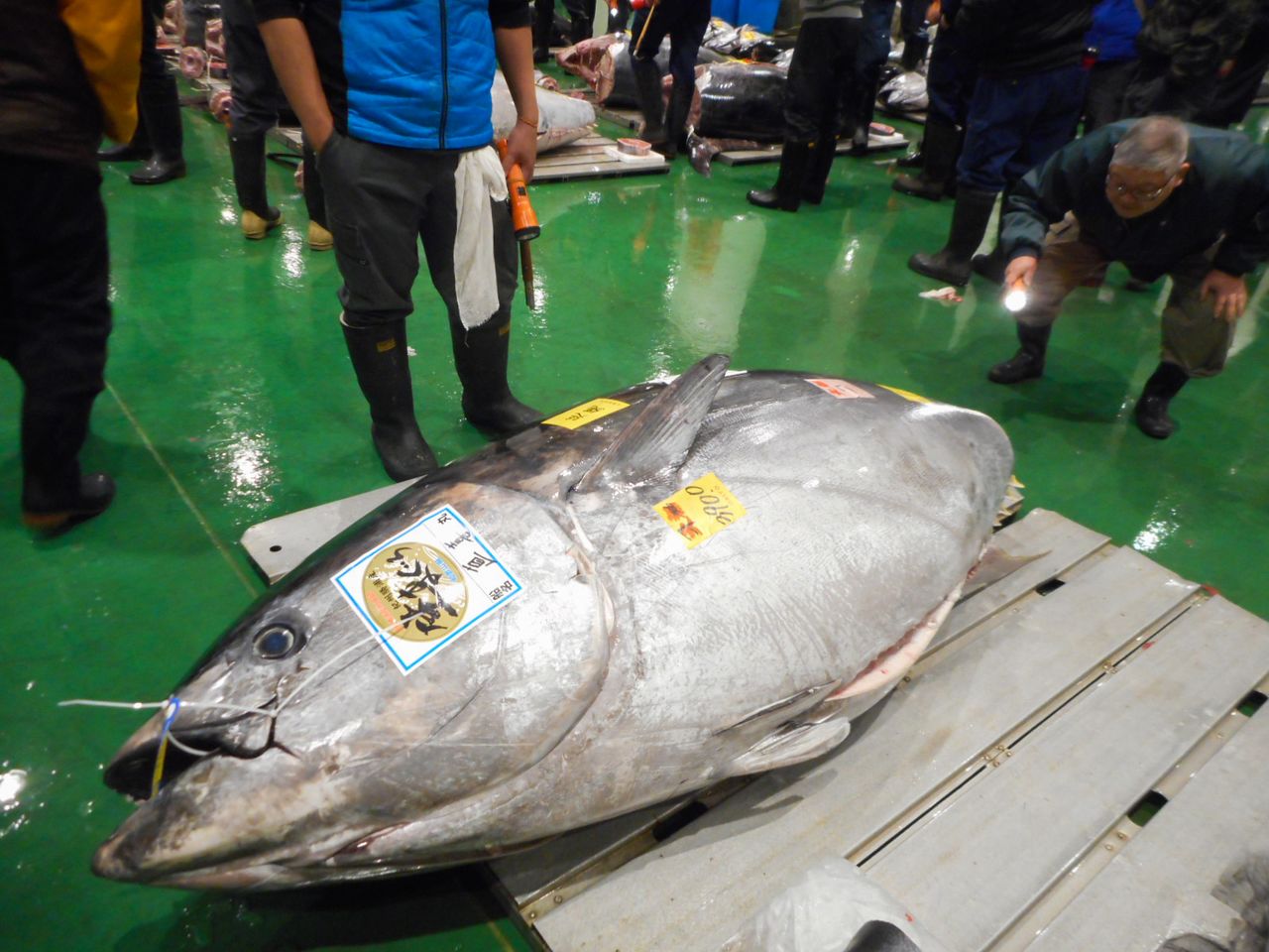 Early in the morning of January 5, 2020, a bluefin tuna captured in the waters off Ōma on the northern tip of the Aomori Prefecture coast was sold at the Toyosu Fisheries Wholesale Market New Year’s auction for ¥193.2 million. The fish weighed in at 276 kilograms, meaning it cost ¥700,000 per kilogram. While this didn’t quite reach the ¥333.6 million price tag (¥1.2 million per kilogram) for a 278-kilogram tuna sold in 2019, it still ranks as one of the highest bids ever, including the decades when the new year auction was held at the old Tsukiji Fish Market.