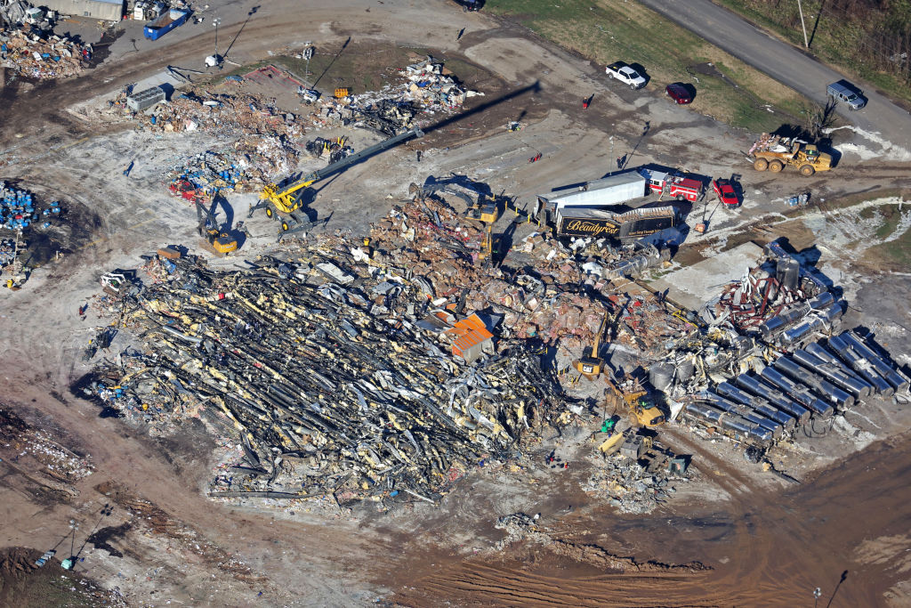 MAYFIELD, Ky. (WKRN) — Cleanup continues around the Mayfield Consumer Products candle factory after a late-night tornado destroyed the building Friday night.