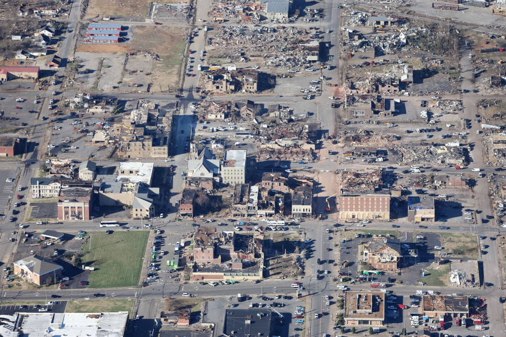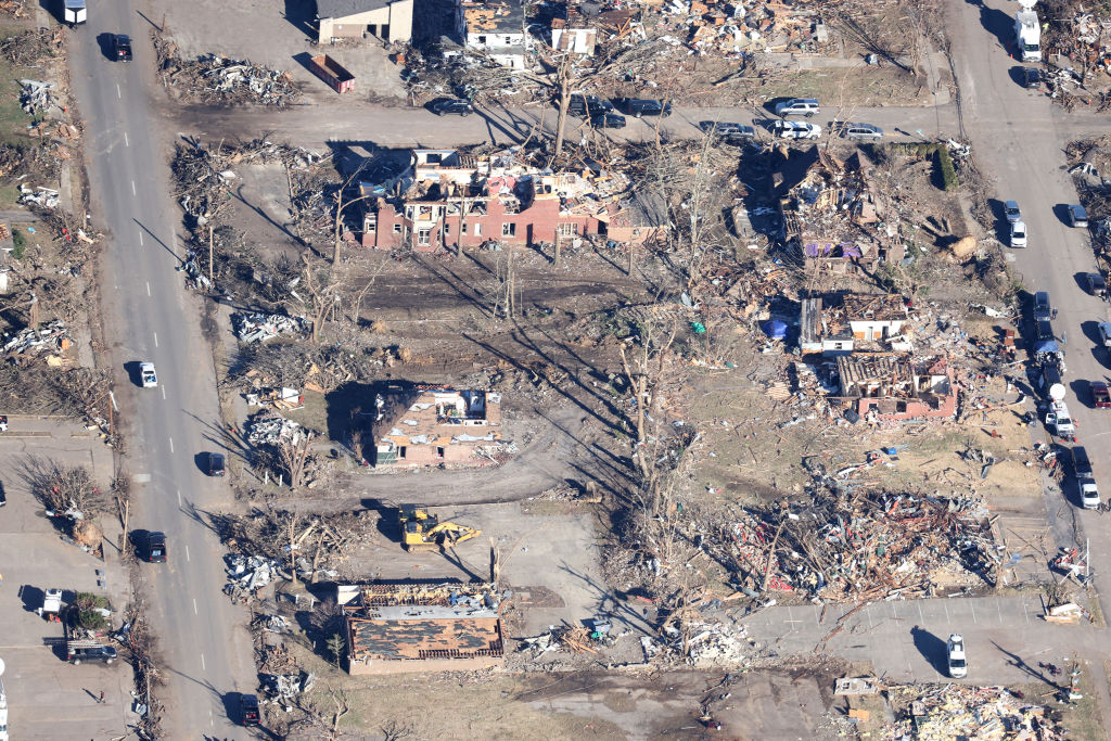 New aerial footage from Monday shows massive damage in the Kentucky city of 10,000.