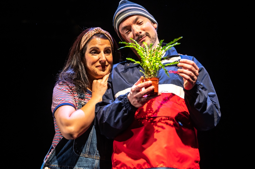 And it doesn’t disappoint, as the story finds a way back in, giving off a feeling that is so fresh and different from the first. This time forward, two lost souls, played by Dunn and Sadiq, find one another in the oddest of stairwell spaces. It feels compellingly different, with a beautifully singed edge of romance and wonder, yet cut from the same cloth and place of attachment. It’s hard to describe the detailed awkwardness that unpacks its way onto the stage during this wonderfully thoughtful idea, but the second part completely finds its fire in the two characters’ spark, lit by the surprisingly strong connection that only in the last moment is drawn together with the first. An impressive feat.