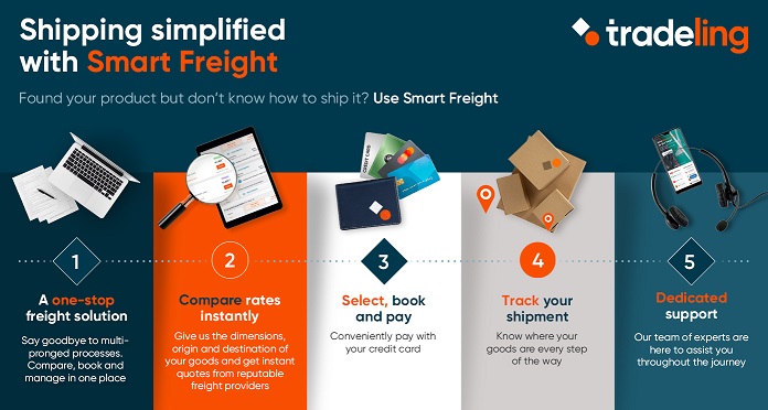 Through this collaboration, businesses can conduct seamless trade with traders and enterprises in China. Tradeling Smart Freight gives customers the power to easily compare live freight quotes, book, manage and track the shipment, and then communicate with the vendor in one integrated platform. They will also be able to purchase cargo insurance as an optional extra and opt for customs clearance and door-to-door delivery.
