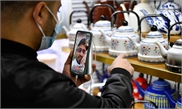 A Yemeni merchant is introducing prices of teapots to Saudi Arabian customers via video at Yiwu International Trade City in Yiwu, East China’s Zhejiang Province.File photo:Xinhua