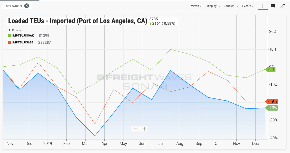 Import TEUs into California’s three largest ports. (SONAR: IMPTEU.USLAX, USLGB, USOAK)