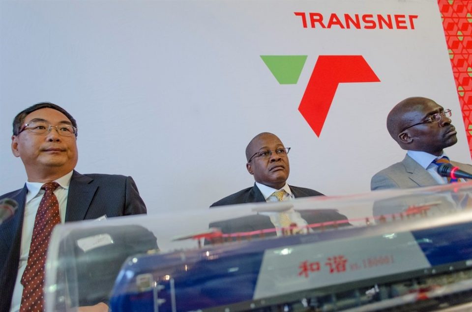 A China South Rail official, former Transnet CEO Brian Molefe and erstwhile public enterprises minister Malusi Gigaba.