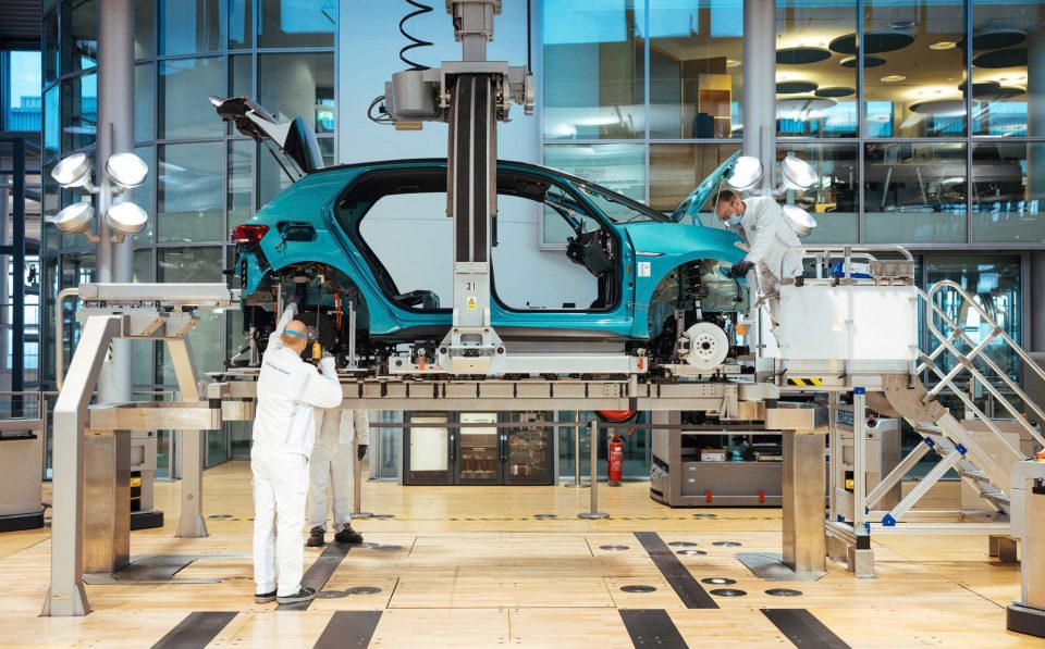 Assembly of the ID. 3 in the Transparent Factory Dresden.