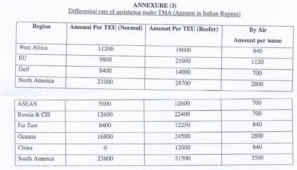 5. The scheme assists for both freight and marketing of exports by sea or air