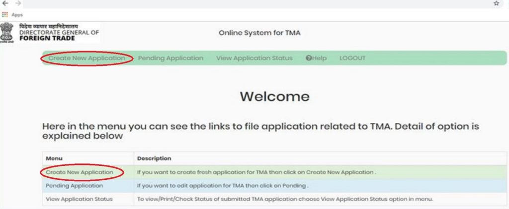 For TMA application Online Click on Apply for Scrips as Circled in the Picture