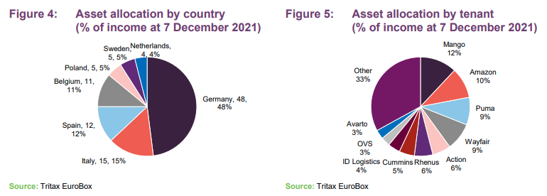 On the back of the supply-demand imbalance, EBOX’s manager states that rents are stepping up materially, as evidenced by a 2.4% increase in like-for-like rental income in its portfolio in the year to 30 September 2021. Savills believes that many rental growth forecasts are underestimating the localised market conditions which ultimately drive rental growth and leads them to state that current forecasts from Capital Economics of 1.8% rental growth per year, as a European average, should be easily exceeded.
