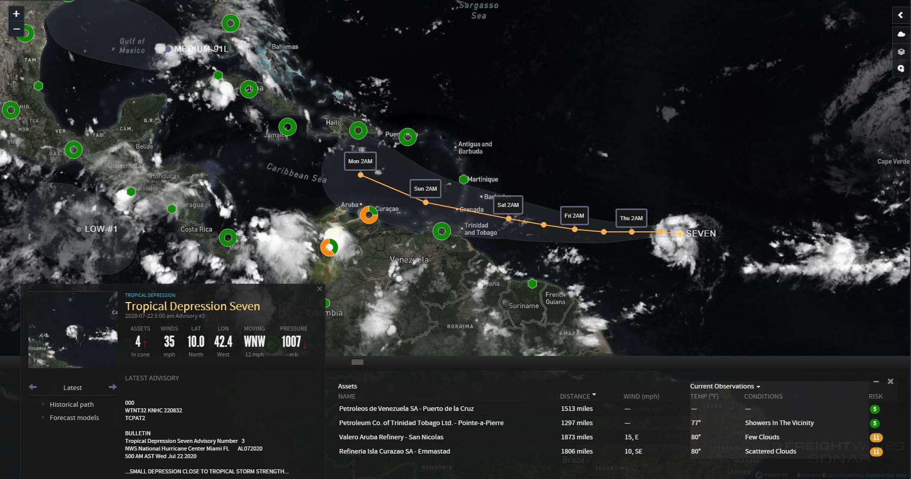 Tropical Depression Seven will likely become Tropical Storm Gonzalo sometime Wednesday. It will move into the southern Caribbean Sea several days from now, between South America and the island of Hispañola. The latest NHC forecast has Gonzalo maintaining tropical storm strength at least until early next week.