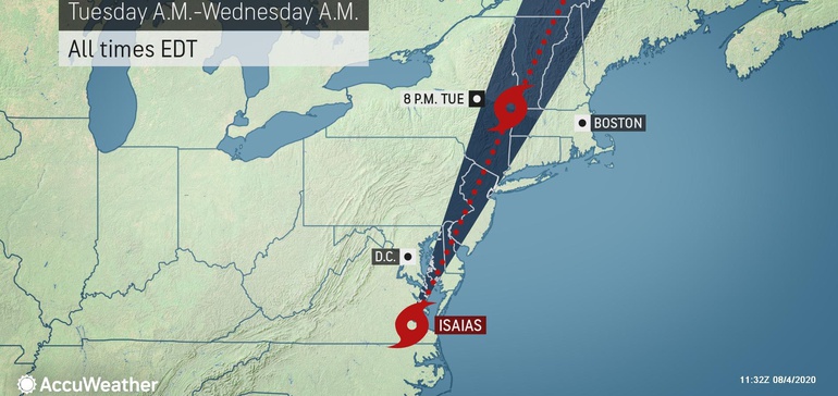 “Only gradual weakening is anticipated while Isaias moves north-northeastward near the mid-Atlantic coast today,” reads the NHC’s 11 a.m. alert.