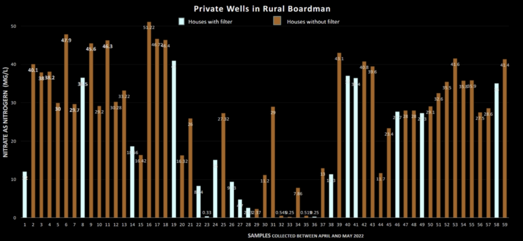 The group has tested the tap water in 59 homes that rely on wells around Boardman and nearby Irrigon. Only 17 had reverse osmosis filters.