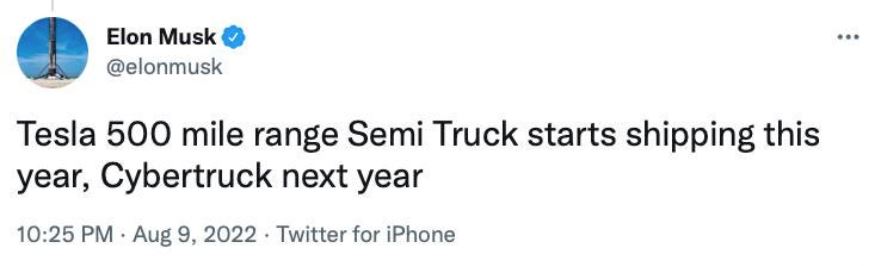 Before his most recent tweet, Musk’s latest estimate for the Semi, originally due in 2019, was late 2023. His rationale made sense. Using its restricted supply of battery cells in Model 3 and Model Y vehicles generates greater returns than in the heavier and more power-hungry Semi.