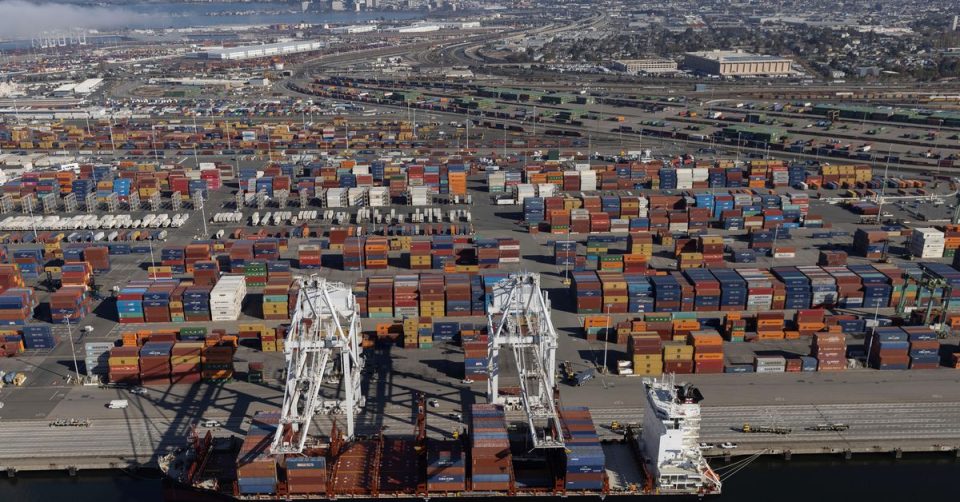 Shipping containers are unloaded from ships at a container terminal at the port of Oakland, California, U.S., October 28, 2021. REUTERS/Carlos Barria