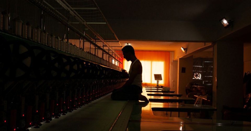 Palestinian-Syrian refugee, Ahmed, 27, works alone in a textile factory in Izmir, Turkey, July 15, 2017. REUTERS/Ekaterina Anchevskaya