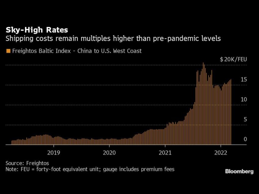 The pandemic-driven boom in demand for goods pushed both contract and spot rates for shipping to records — getting merchandise from place to place costs about 11 times more than it did before the COVID-19 outbreak. With demand so high and capacity limited, importers are paying up to avoid a repeat of 2021, when some contracts set at lower prices weren’t honored, leaving customers without their stuff.