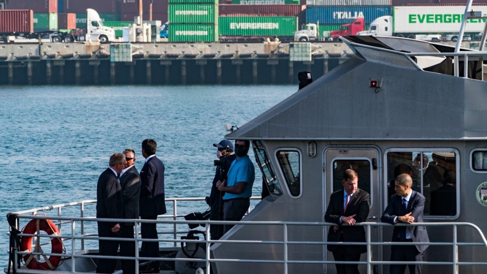 Walsh was joined by Los Angeles Mayor Eric Garcetti, Long Beach Mayor Robert Garcia, Rep. Nanette Barragan, D-Los Angeles, Port of Los Angeles Executive Director Gene Seroka and Port of Long Beach Executive Director Mario Cordero.