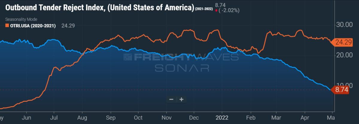 “At this point the overall numbers suggest that the freight market is regressing back towards the mean,” the report said. “Smaller carriers, or perhaps carriers who came into the market very recently to take advantage of the rate of growth, may struggle with lower demand as shippers might be able to move away from the spot market and back towards contracted rates with more established carriers.”