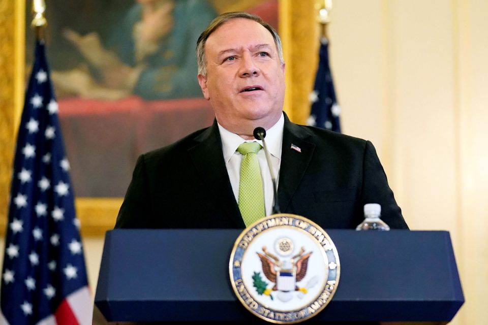 U.S. Secretary of State Mike Pompeo speaks during a news conference to announce the Trump administration’s restoration of sanctions on Iran, at the U.S. State Department in Washington, September 21, 2020.