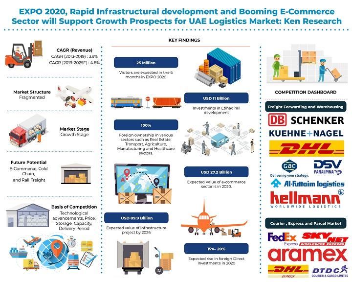 The report titled “UAE Logistics and Warehousing Market Outlook to 2025 – By Road , Sea and Air Freight Forwarding; Domestic and International Freight, Major Flow Corridors, Integrated and Contract Freight Forwarding; By Warehousing (Industrial / Retail, CFS / Inland Container Depot & Cold Storage, Agriculture), End Users (Manufacturing, Retail, Food and Beverage, Automotive, Oil and Gas, Healthcare), Type of Warehouses; By Courier Express & Parcel Market , and, E-commerce Logistics” https://www.kenresearch.com/automotive-transportation-and-warehousing/logistics-and-shipping/uae-logistics-and-warehousing-market-outlook/303064-100.html provides a comprehensive analysis of logistics and warehousing market of UAE. The report covers the overall size and future outlook of UAE Freight Forwarding, Warehousing, Courier Express and Parcel, 3PL and E Commerce Logistics market in terms of value, segmentation on the basis of service mix, by geography, by ownership and by type of industries. The report also covers the competitive landscape and company profiles of major Freight Forwarding, Warehousing and Express Logistics Companies in UAE. The report concludes with market projections for future and analyst recommendations highlighting the major opportunities and challenges.