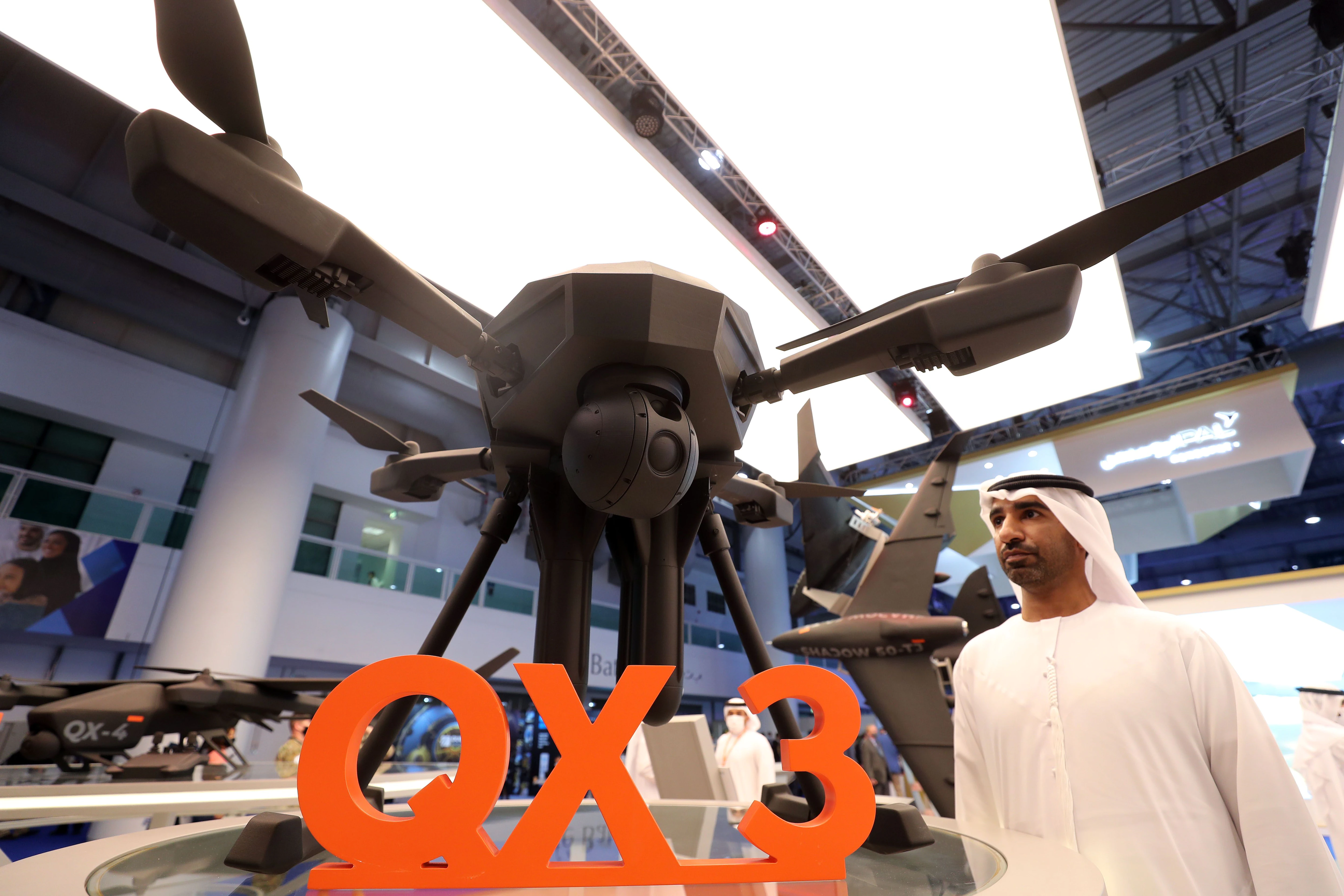 A collection of unmanned aerial vehicles of every size was on display at the five-day exhibition, which started on Sunday at Al Maktoum International Airport.