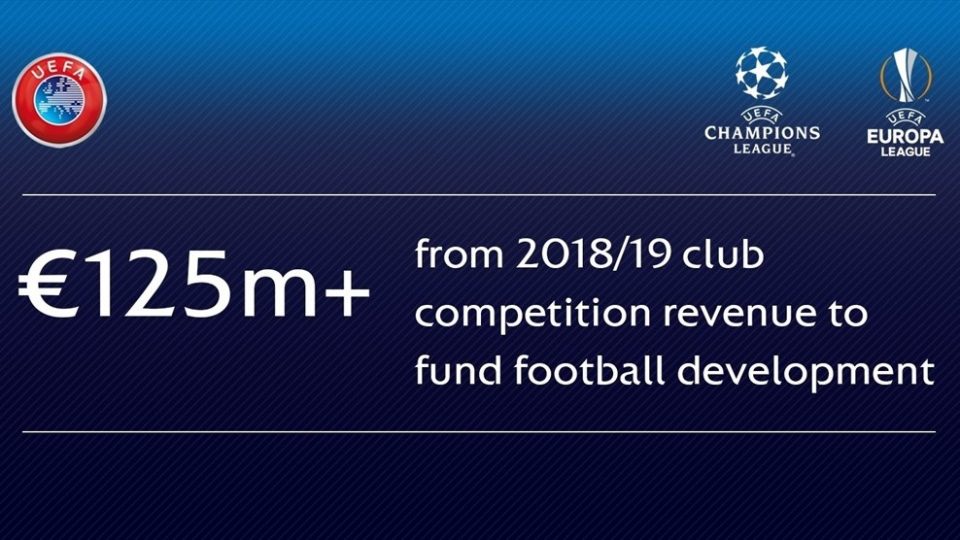 - 40 associations without participants in the 2018/19 UEFA Champions League group stage (totalling €25.73m, compared with 38 national associations and €25.09m in 2017/18).