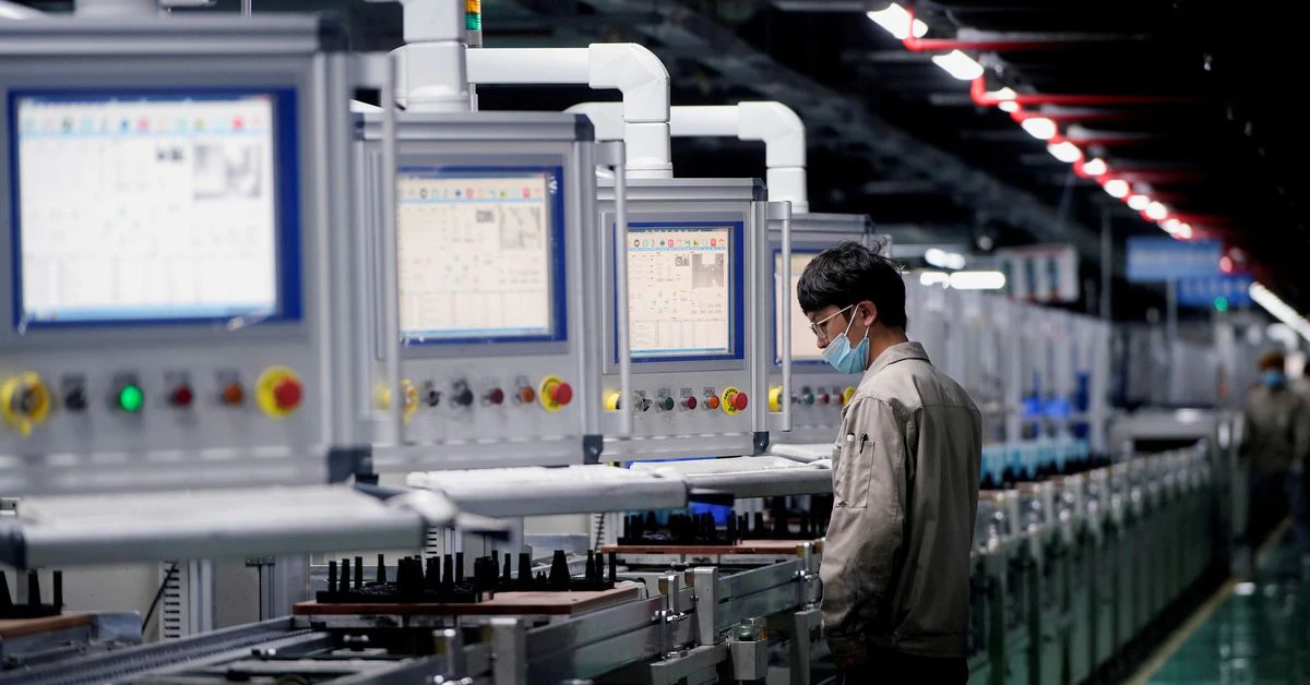An employee works on the production line of electric vehicle (EV) battery manufacturer Octillion in Hefei, Anhui province, China March 30, 2021. REUTERS/Aly Song