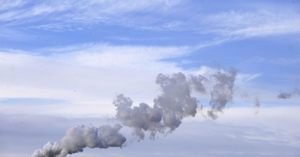 A chimney is seen at an industrial site on Teesside, northern England February 8,2009. REUTERS/Nigel Roddis(BRITAIN)