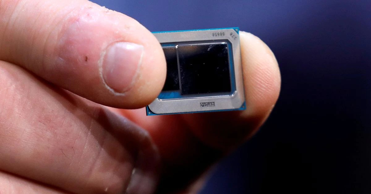An Intel Tiger Lake chip is displayed at an Intel news conference during the 2020 CES in Las Vegas, Nevada, U.S. January 6, 2020.
