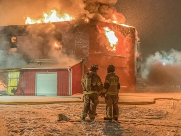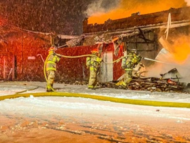 Local firefighters braved the snowy and frigid conditions while they battled a large warehouse fire in Princeton Wednesday night.