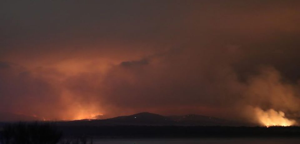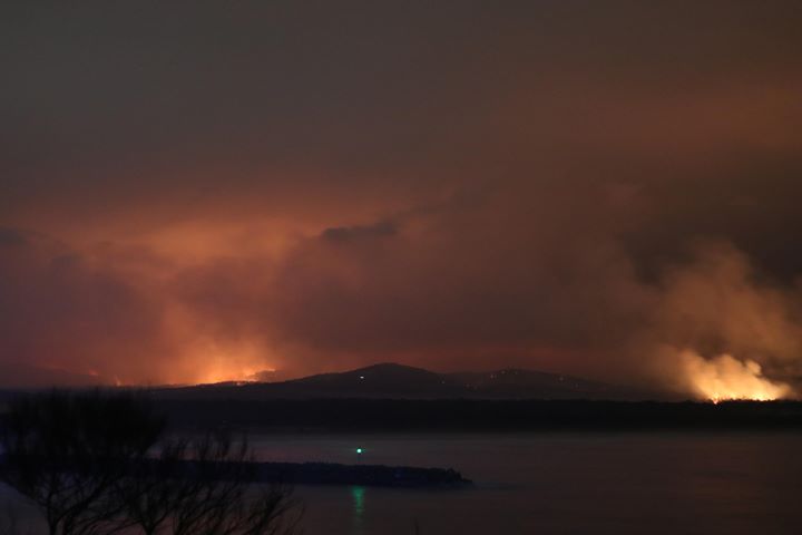 Around Eden last night, the anticipated southerly change brought the fire up from the Victorian border as far as the southern shores of Twofold Bay at remarkable speed. There had been fears for several days about whether Eden would prove defensible, and late yesterday afternoon, buses evacuated around 150 people to Merimbula from the Eden Fisherman’s Club.