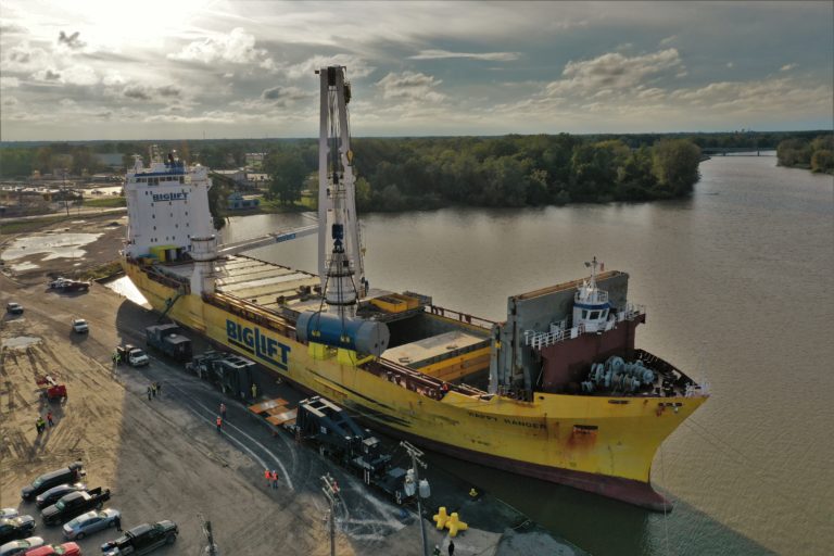 However, he says Monroe has been highly successful in arranging the movement of project cargo moved by carriers such as Spliethoff and Big Lift, including wind energy towers made by Ventower Industries. The port also installed a $1 million rail spur on its dock to receive a 390-ton generator stator from Rotterdam for the DTE Energy’s Fermi 2 nuclear power plant in Newport, Michigan. It also handles coal for DTE’s coal-fired power station, which is located next to the Port of Monroe.