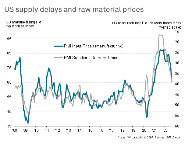 US manufacturing reports steepening output loss, but supply chain delays and price pressures ease