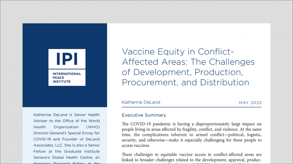 This issue brief focuses on the challenges of equitably distributing COVID-19 vaccines to populations in conflict-affected areas. It begins by looking at general issues related to the development, approval, production, procurement, and distribution of vaccines. It then examines the particular challenges to distributing vaccines in conflict-affected areas both before and during the vaccine rollout.