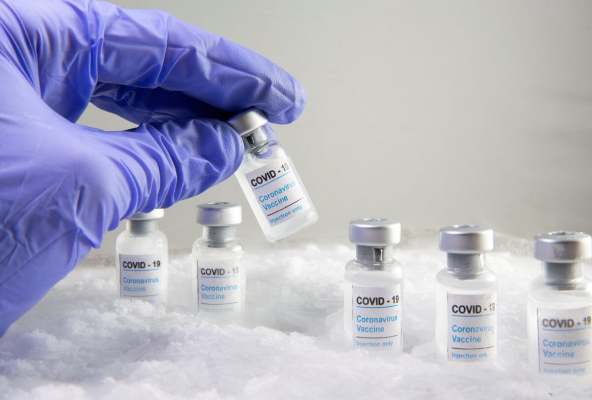 FILE PHOTO: Woman holds a vial labelled “COVID-19 Coronavirus Vaccine” over dry ice in this illustration taken, December 5, 2020.