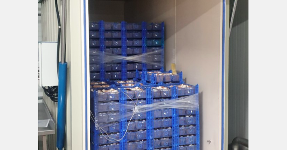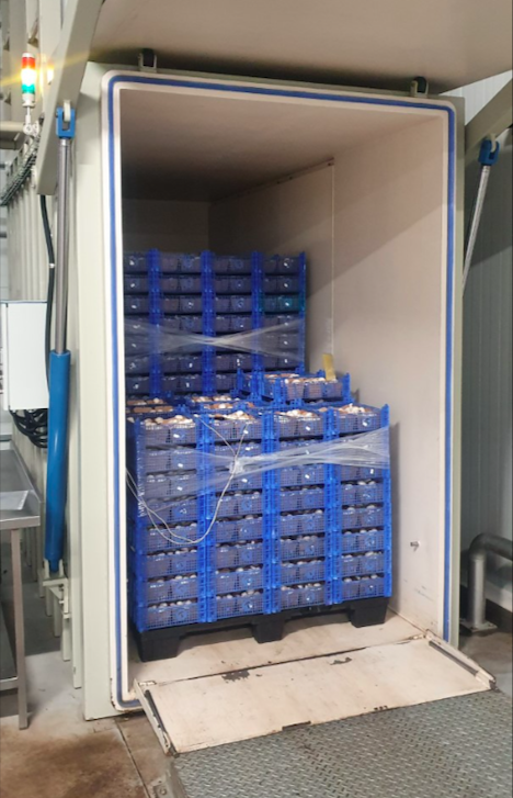 “This cooling system consists of a large cube which is 2 meters high and 1.5 meter wide. The surroundings are designed with a very thick metal, in order to be able to maintain the merchandise in a vacuum. To cool the product, we place a few pallets in this box and leave them there for 15 to 30 minutes. This way, we avoid maintaining hot spots in the middle of the pallet which could lead to the accelerated aging of the product while it cools down with a conventional cooling system.”