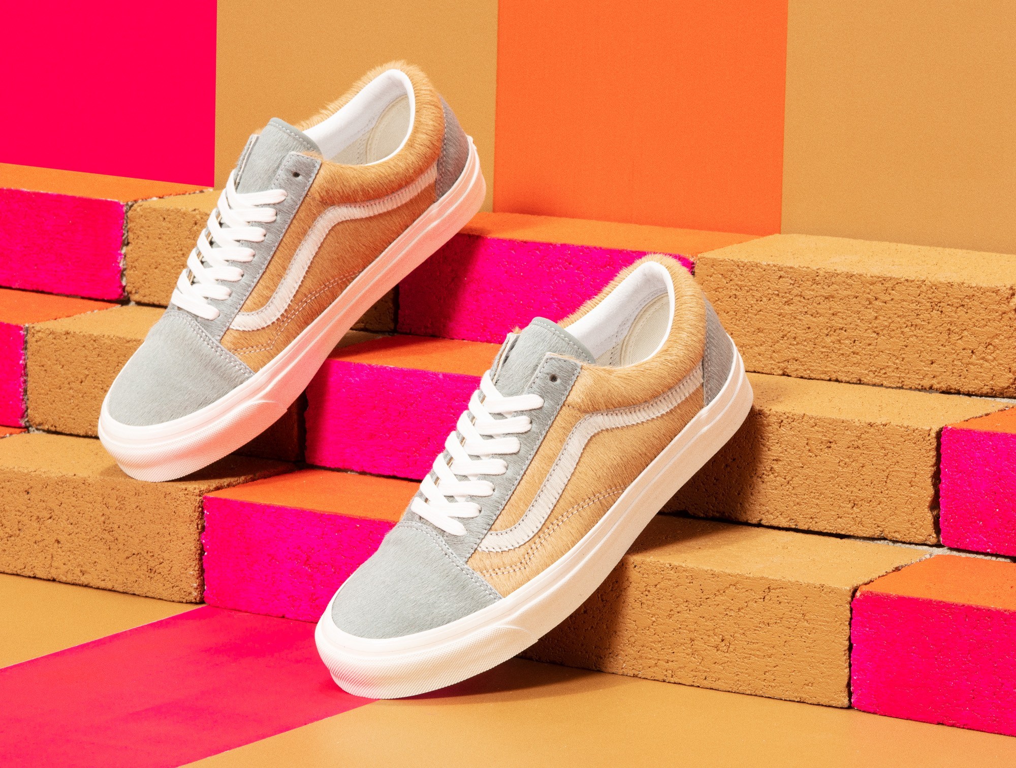 Vans Old Skool 36 DX is the hero of the lux color block pack and features a multi-panel construction with premium, pony hair uppers in two-tone color assortments. Available in two retro inspired colorways from the brand past, include pink pony/true white and grey pony/true white, the Old Skool 36 DX includes a higher-glossed foxing stripe, cotton laces and includes an OrthoLite™ footbed for added comfort and support. The pony hair uppers offer an elevated materialization to the brand’s iconic Old Skool model.