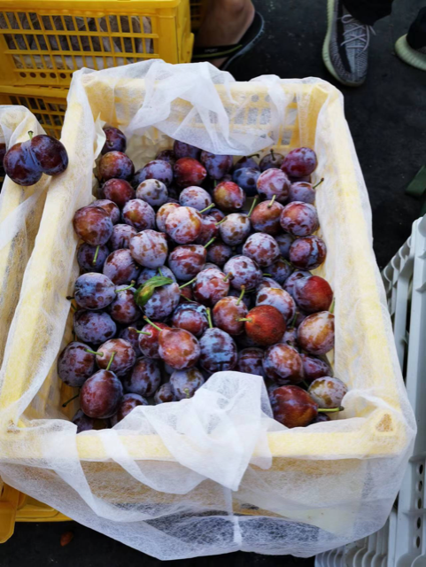 The market for Vietnamese dragon fruit is not great at the moment. One trader explained that many neighboring production areas supply dragon fruit directly to their Chinese business partners, so there is less demand for dragon fruit in first-tier wholesale markets. That dampened the entire wholesale market for dragon fruit. (Photo right: Xinjiang plums)