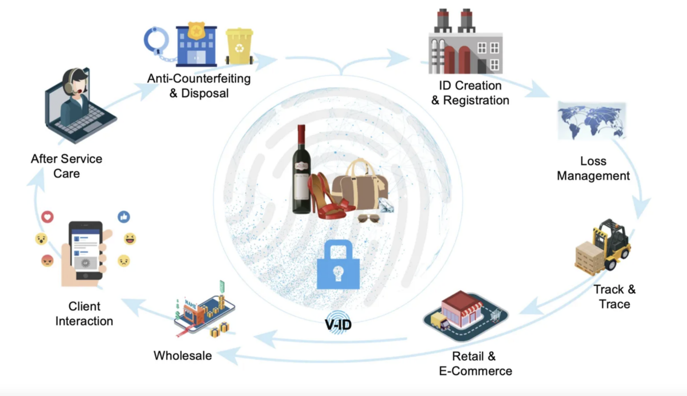 Every product that runs on the VeChainThor platform is assigned a unique and distinct identifier. The identifier, called VID, can be used to identify the product, allowing the ownership history to be tracked at any time.