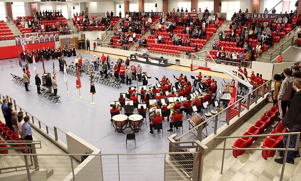 Farmington High Band presented several numbers during the Farmington High School Veterans Day Assembly on Thursday at Cardinal Arena. The band played Battle Hymn of the Republic and Taps.