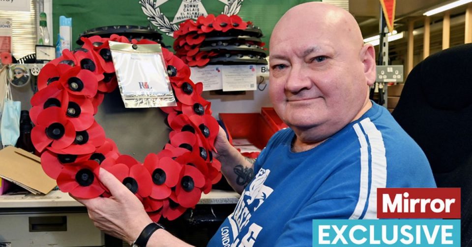 Ex soldiers say their job at the Poppy Factory, which makes the tributes laid at the cenotaph by the royals, has given much-needed structure to their lives after suffering with PTSD