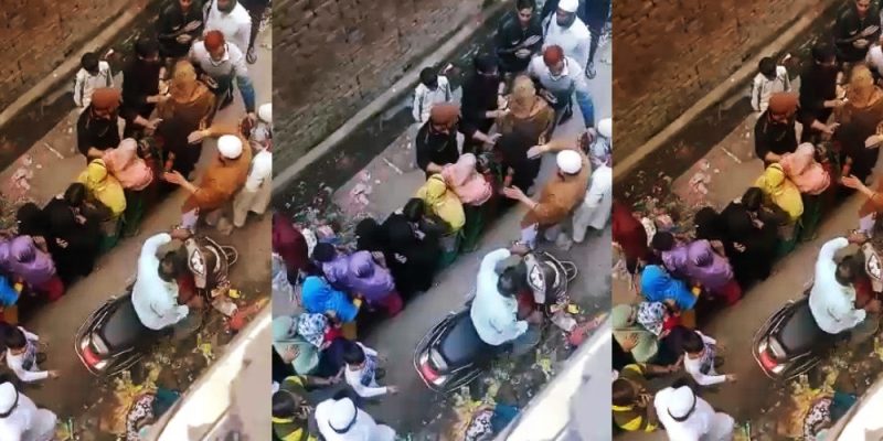 Alt News spoke with Shahzad Malik as well. He has been highlighted in red below. “I have a business of car polish. There are a lot of people here who lost their homes in the fire. Some ration was arranged from outside to be distributed to these people but there were some 100-150 women who had nothing. Some of them also had children. I could not see their plight. I went home, got money and distributed Rs 500 each. Now someone has shot the video and circulated it with a false claim. This video was shot on February 28. Only 30 seconds have been put out on social media. My video is of 3 minutes and I am also saying in the video that only the neediest should take help. But they have edited this out,” he informed.