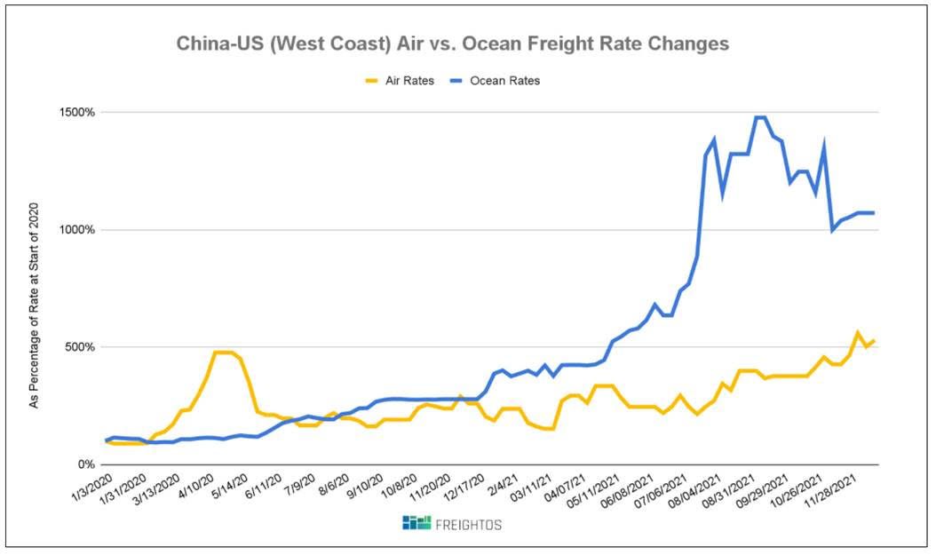 Unfortunately there is nothing friendly about the skies for airfreight. Logistics managers looking to the heavens for solutions will only find the price tag hefty. According to the Freightos marketplace, air cargo rates from Shanghai to the U.S. West Coast were more than $16 per kilogram last week, a 25% increase in the past month and more than four times typical levels.