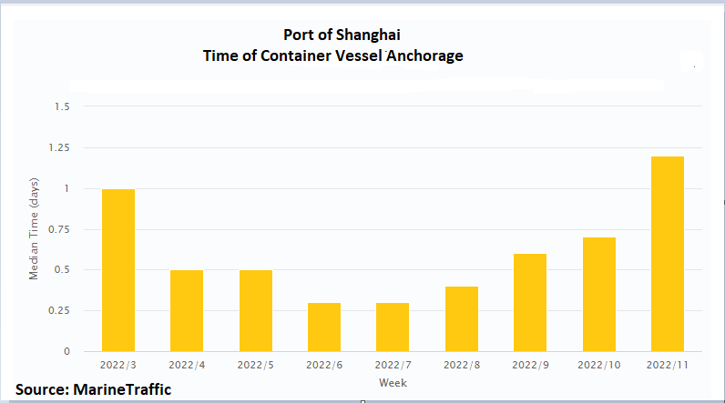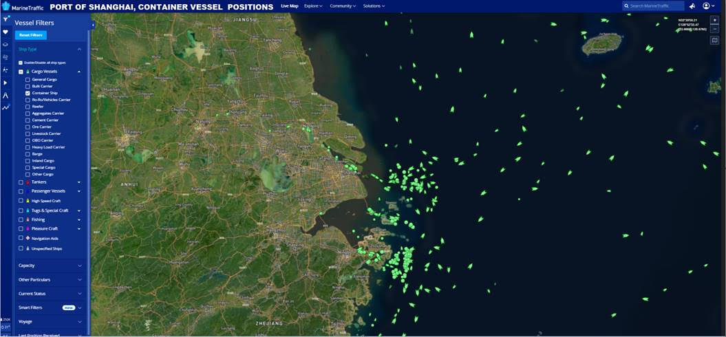 “In just a month, over 100,000 additional containers capacity is strung waiting outside Shanghai,” says Alex Charvalias, supply chain in-transit visibility lead at MarineTraffic. “We also see a number of bulk carriers waiting outside the port too.”