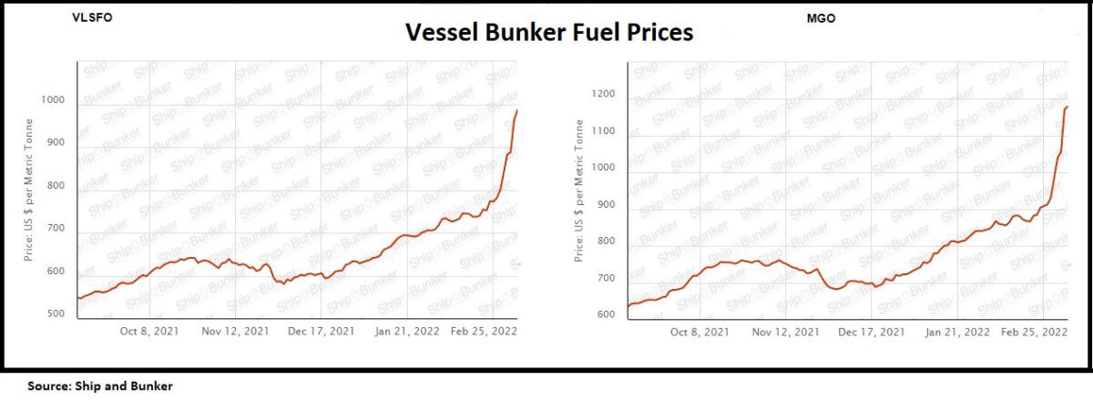 Japanese ONE and South Korean HMM, as well as other carriers, are adding fuel fees in an effort to cover skyrocketing fuel costs. As we have seen through the last two years, any additional surcharges have been passed on from the importer to the consumer.