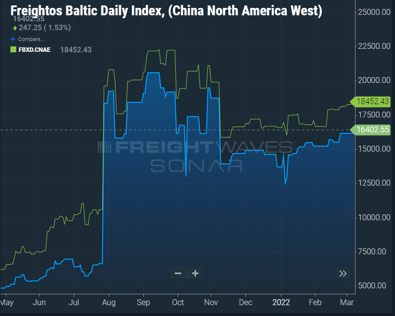 “On the Far East to the U.S. East Coast, deployed capacity is expected to fall in the coming three weeks,” explained Peter Sand, chief analyst at Xeneta. “According to our data, spot rates out of China into the U.S. East Coast and U.S. West Coast are now the highest ever — plus any applicable priority shipment fees.”