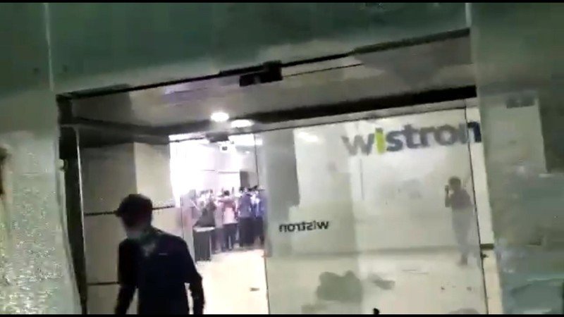 Video shared by TOI Bengaluru shows loud shouting, and employees smashing the glass front of the Wistron factory. Images also show overturned cars as well as signs being burned.
