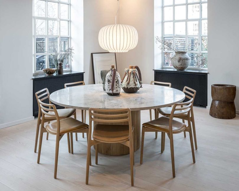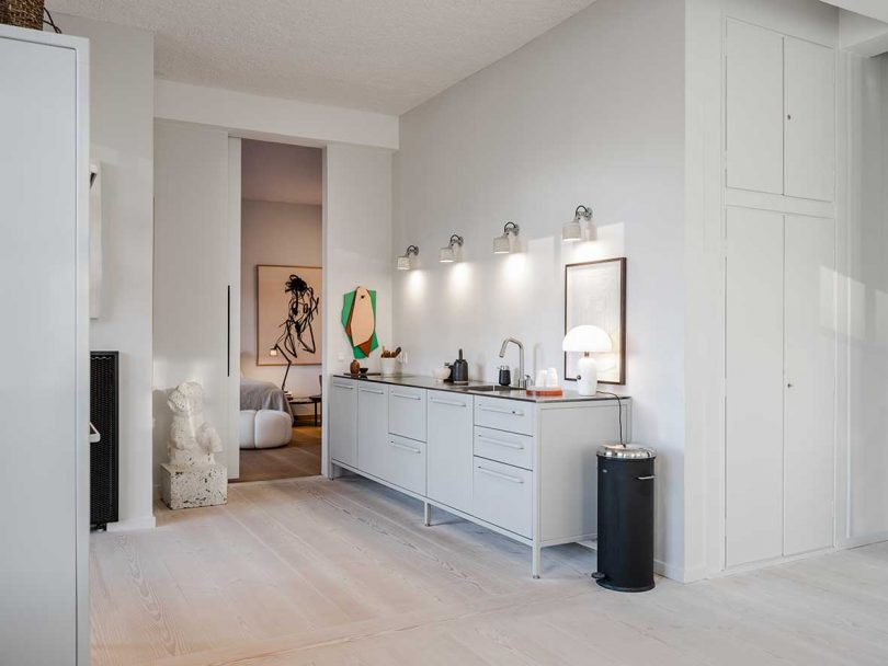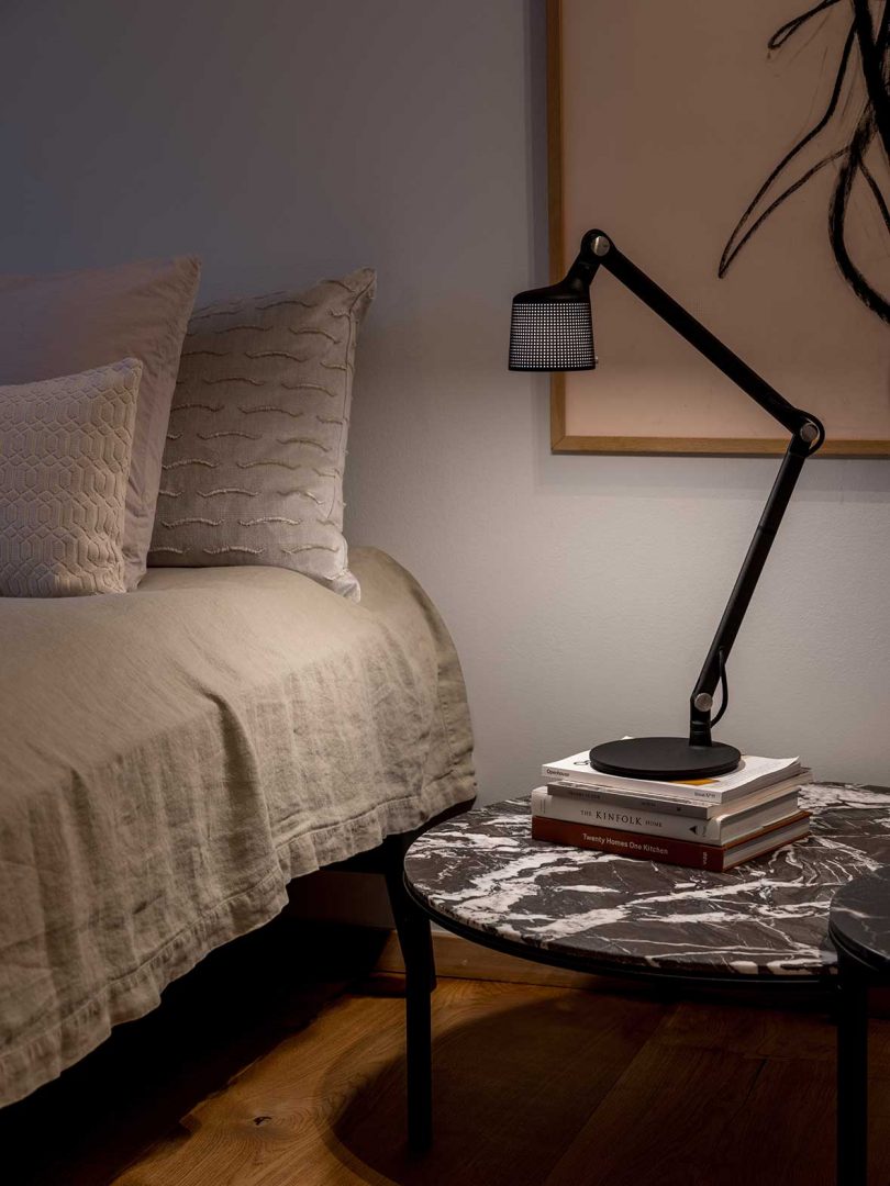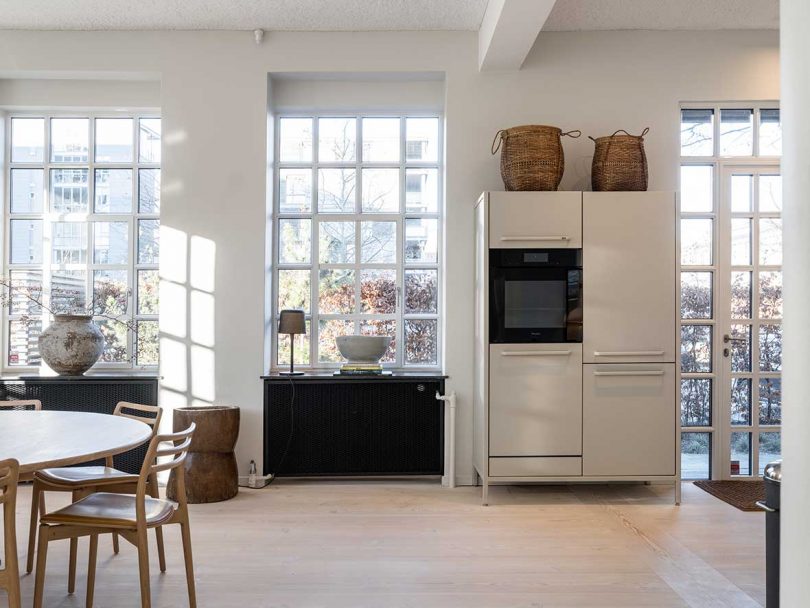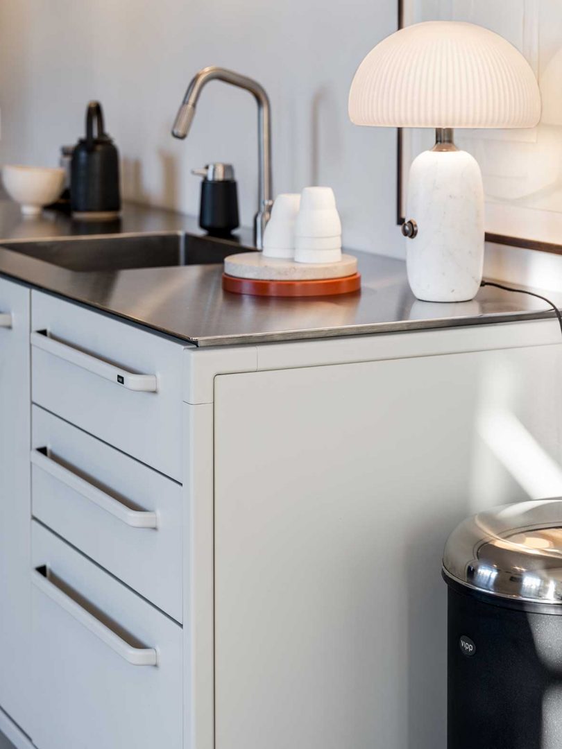 Danish brand Vipp continues to expand their portfolio outside of their iconic pedal bin and home furnishings with a new hotel in Copenhagen. Marking Vipp’s 6th hotel, the Vipp Pencil Case is located in an old pencil factory right across the bridge from the heart of the city. The one-of-a-kind hotel comprises a single, 90-square-meter room (approx. 968 square feet) housed within a 1930s Bauhaus-inspired building. The light-filled, ground floor hotel room is the result of a one-year renovation by interior designer, Julie Cloos Mølsgaard, who created a cozy retreat for the design-focused traveler.