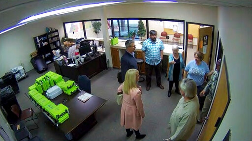 A computer forensics team hired by allies of then-President Donald Trump traveled to Coffee County, about 200 miles (320 kilometers) southeast of Atlanta, on Jan. 7, 2021. A company representative has said they made complete copies of the election management system server and other election system components. Later that month, two men who have been involved in efforts to discredit the 2020 election results also spent hours inside the elections office with access to the equipment.