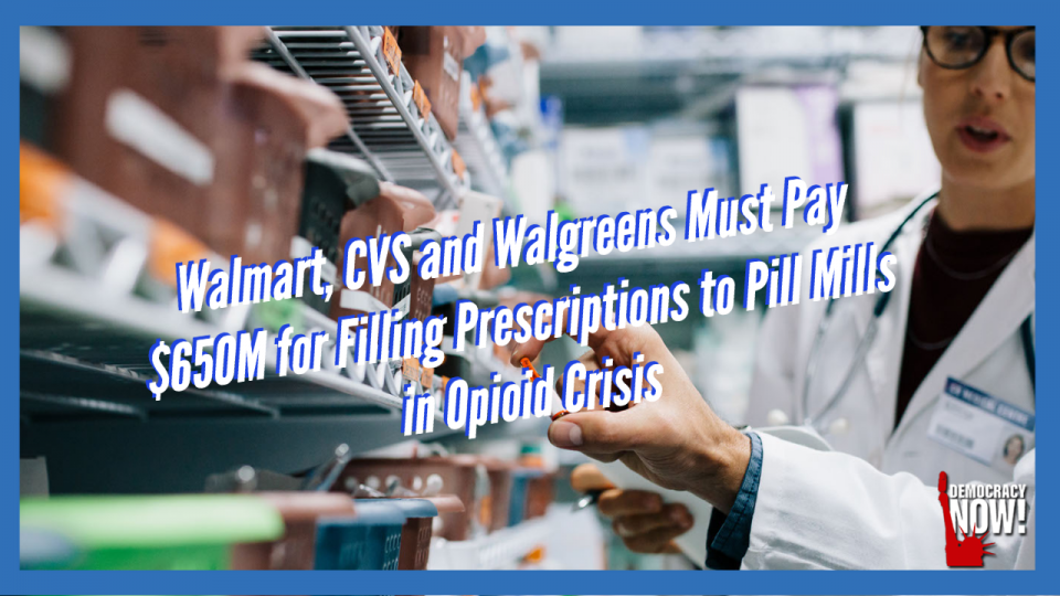 A landmark ruling orders pharmacy chains Walmart, CVS and Walgreens to pay a combined $650 million for their role in fueling the opioid crisis, as other cases have focused on opioid makers and wholesalers that distribute the addictive painkillers. A federal judge in Ohio found the pharmacy chains accountable for filling prescriptions even after suspecting doctors were operating pill mills. “It’s high time that all the players in this terrible chain of manufacture, prescribing, dispensing, are held responsible for their actions,” says Barry Meier, author of “Pain Killer: An Empire of Deceit and the Origin of America’s Opioid Epidemic.” The Pulitzer Prize-winning reporter covered the opioid crisis for decades at The New York Times. He also discusses similar rulings against Walgreens and others in San Francisco and Florida.